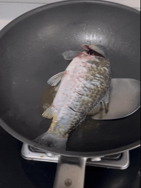 我在全程开大火的情况下,两面煎,一点没有粘锅,让我都觉得有点像涂层锅的不粘性了◁=△。